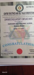 Harvard Polytechnic, Ilorin, has received a major boost to its reputation with the Centre for Ethics and Self-Value Orientation (CESVO) naming the institution the most ethically responsible private polytechnic in Kwara State and ranking it among the top 30 nationwide.